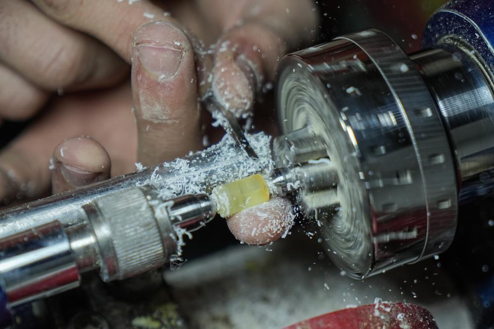 Yapım aşamasını sıralayan Cengiz, "Kaya halinde bizim elimize ulaşıyor. Biz bunu işlemeden önce su içerisinde bekletiyoruz. Çünkü havayla temas ettiği zaman sertleşiyor ve yapım aşamasında kırılıp çatlamalara maruz kalıyor. Parçaları küp küp hale getirdikten sonra taslak aşamasına geçiyoruz. Taslak aşamasında taneleri silindir şeklinde yuvarlıyoruz. Delim aşamasından sonra tanelere form veriyoruz. Daha sonra ise zımpara ve cila işlemine geçiyoruz. Zımparadan sonra daha parlak bir görüntü oluşması ve elde kullanırken rahat bir çekim sağlaması için cila atıyoruz. Cilanın ardında dizimini bitirip müşteriye teslim ediyoruz" ifadelerini kullandı.