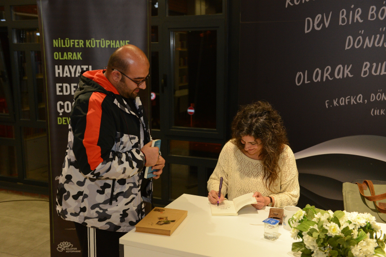 Söyleşinin ardından katılımcıların sorularını yanıtlayan Irmak Zileli, okurları için kitaplarını imzaladı.
