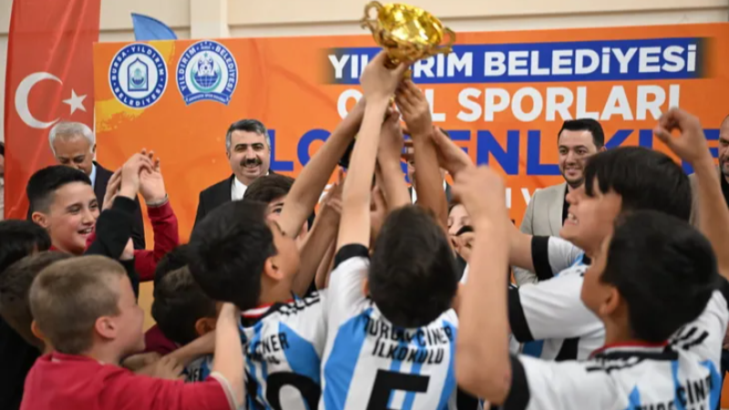 İlkokul kategorisinde, futbol ve beceri koordinasyon parkuru branşlarında yapılan müsabakaların ardından dereceye giren öğrencilere ödülleri verilirken yarışmaya katılan tüm okullara Yıldırım Belediyesi tarafından spor malzemesi dağıtımı yapıldı.
