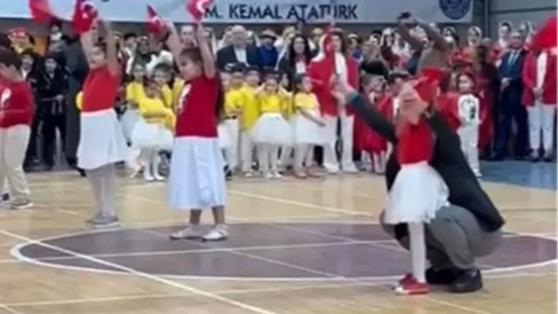 Baba-kızın bu samimi ve sevgi dolu anları, izleyen veliler ve öğretmenler tarafından ayakta alkışlandı.
