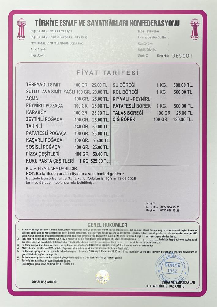 Ham madde, doğal gaz, kira ve personel giderleri sebebiyle zam yapıldığı belirtildi. Yapılan zammın ardından 100 gram poğaça 20 liradan 25 liraya, 100 gram tereyağlı simit 20 liradan 25 liraya, 100 gram sütlü simit 15 liradan 20 liraya yükseldi. Bursa Simitçiler ve Unlu Madde İmalatçıları Esnaf ve Sanatkarlar Odası Başkanı Erdal Pınar, "Yaklaşık 8 aydır bizim esnafımız zam yapmıyor. Normal şartlarda ocak ayında zam yapılması gerekiyordu. Vatandaşlarımızı da düşünerek 4 ay gecikmeli bu zammı uyguladık. Esnaf kurtarmaz hale geldiği için bu zammı yapmak zorunda kaldık. Çünkü personelinden ununa, şekerinden doğal gazına kadar maliyetler arttı. Bunlar yükseldiği için esnafımızın ayakta durması için yüzde 25 zam yaptık. 8 ayda yüzde 25 zam normaldir. İnce eleyip sık dokuduk. Kazan simidine ise zam yapmadık. Halen 100 gram kazan simidimiz 15 liradan satılmaktadır" dedi.
