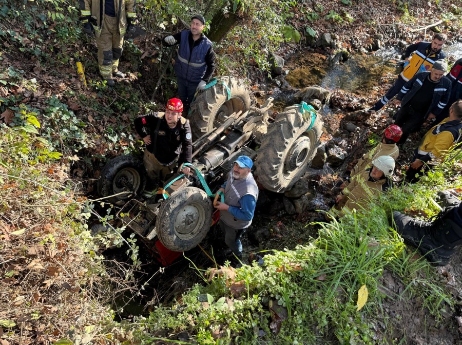 Sürücüsünün direksiyon hakimiyetini kaybettiği traktör, mahalledeki bir köprüden dere yatağına yuvarlandı. Kazada traktör ters dönerken, sürücü Ali Durmuş traktörün altında sıkıştı.