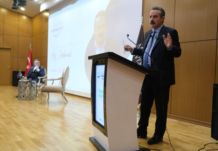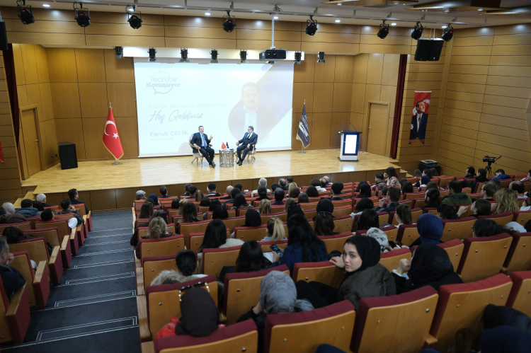 Mudanya Üniversitesi’nin düzenlediği ve moderatörlüğünü Genel Sekreter Ali Mollasalih’in yaptığı ‘Tecrübe Konuşuyor’ etkinliğinin konuğu olan Faruk Çelik, konuşmasına Bursa’nın kısa zamanda büyük aşama göstererek gelişen Mudanya Üniversitesi’nde olmaktan mutluluk duyduğunu söyleyerek başladı. Mudanya Üniversitesi’nin artık Bursa dışında da tanınan bir üniversite olduğunu dile getiren Çelik, “Kimse böyle bir başarıyı beklemiyordu. Gün yüzüne çıkan bir üniversite olduğunu görmekten büyük mutluluk duyuyorum. Bursamızın nadide üniversitesinin bu aşamaya gelmesinde başta Mütevelli Heyeti Başkanı Gıyasettin Bingöl olmak üzere tüm emeği geçenleri tebrik ediyorum. Mudanya Üniversitesi’nin gelişiminin devam edeceğine yürekten inanıyorum” dedi.