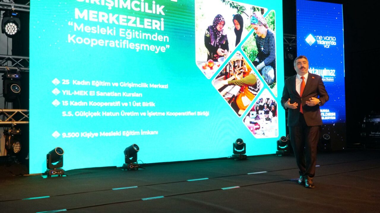 Başkan Yılmaz, özellikle genç nüfusa hitap eden sosyal projelere de önem verdiklerini belirterek, “Mümine Şeremet Uyumayan Kütüphanesi sadece Bursa’da değil, Türkiye genelinde rol model oldu. Mimar Sinan ve Yıldırım Gençlik Merkezi Kütüphanelerimiz tam kapasite çalışıyor. Alev Alatlı Şehir ve Düşünce Sanat Merkezi Kütüphanesi’ni de bakanlarımızın katılımıyla açacağız. Ayrıca kadın girişimcilerimize ve kapalı pazar alanlarına yönelik önemli adımlar attık” dedi.