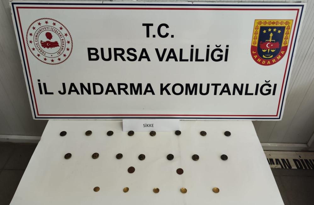 Bursa İl Jandarma Komutanlığı İstihbarat Şube Müdürlüğü ile İnegöl İlçe Jandarma Komutanlığı ekipleri, bir şahsın İstanbul'dan İnegöl'e tarihi eser satmak amacıyla geleceğini tespit etti. Ekipler, C.Ç. isimli şüpheliyi ilçe merkezinde yapılan operasyonla gözaltına aldı. Şüphelinin üzerinde yapılan aramada, Bizans ve Roma dönemlerine ait 17 adet bronz ve 5 adet altın sikke ele geçirildi. Ele geçirilen eserlerin yasa dışı yollardan 100 bin dolara satılmak istendiği öğrenildi.