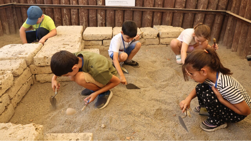Temmuz ayı boyunca farklı mahallelerden gelen çocuklara, uzman eğitmenler eşliğinde zengin bir içerik sunuluyor. “Zamanda Yolculuk: Arkeopark Gezisi” ile kazı alanlarını ve arkeolojik eserleri gözlemleyen çocuklar, “Deneysel Kazı Atölyesi” ile arkeolog gibi kazı yapmanın temel aşamalarını öğreniyorlar.