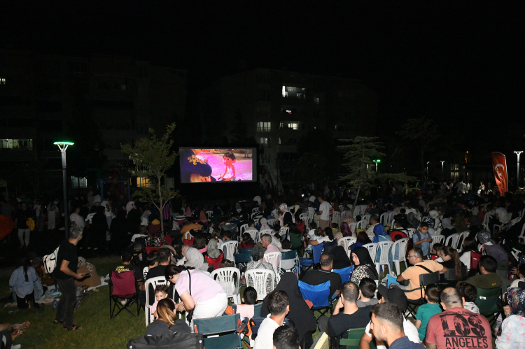 Gösterim sırasında vatandaşlarla sohbet eden Başkan Erkan Aydın, etkinliklerin büyük ilgi görmesinden duyduğu memnuniyeti dile getirdi. Başkan Aydın, “Çocuklarla, gençlerle, mahalle sakinlerimizle birlikte sinema gösterimindeyiz. Haftanın iki akşamı sinema, iki akşamı da Temizlik İşleri Müdürlüğü personelinden oluşan ‘Temiz Orkestra’ konserleriyle vatandaşlarımızın sosyal hayata olan ihtiyacını mahallelere taşıyoruz. İnsan sadece karnını doyurarak yaşamıyor; ruhunu da doyurması lazım. Bu etkinlikler, insanların ruhunu besliyor” dedi.