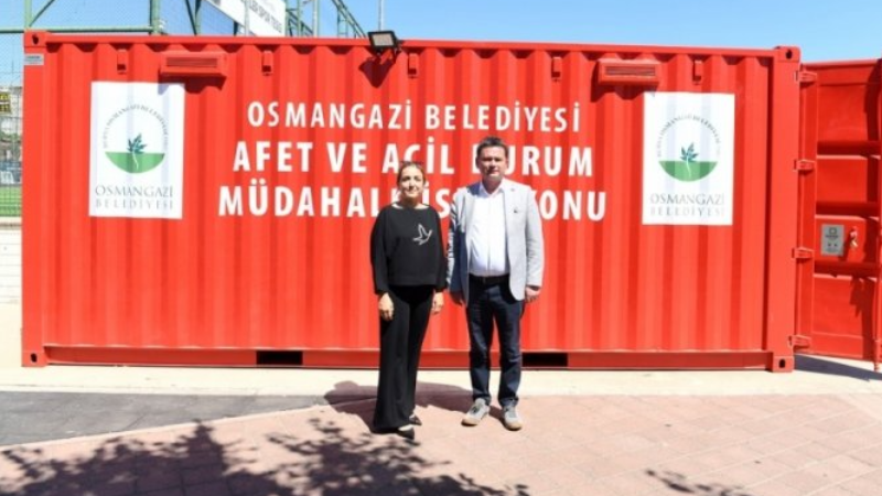 Başkan Erkan Aydın, afetlere karşı hazırlık çalışmalarını kararlılıkla sürdürdüklerini belirterek, "Afet ve Acil Durum Müdahale İstasyonu'nun ikincisini Sırameşeler Mahallesi'ne kurduk. Sırayla tüm mahallelerimize bu konteynerleri yerleştirmeyi hedefliyoruz. Bulunduğumuz alan aynı zamanda ilçemizdeki 439 acil toplanma noktasından bir tanesi. Afet anında ihtiyaç duyulabilecek güneş enerji sistemi, kamera, lavabo ve tuvalet gibi donanımlara sahip konteynerleri Osmangazi'nin her mahallesine kazandıracağız" dedi.