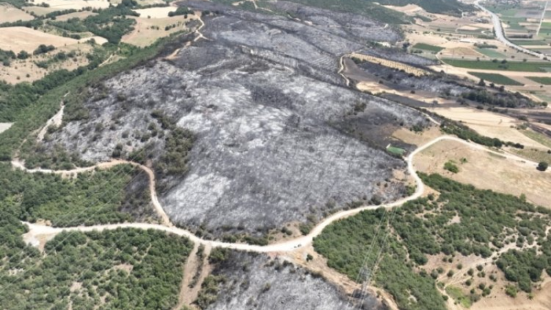 Gündüz gökyüzünden çekilen drone görüntüleri yangının boyutunu bir kez daha gözler önüne serdi. Yaklaşık 500 futbol sahası büyüklüğündeki yeşil alan yangından sonra simsiyah görüntüsüyle dikkat çekti.