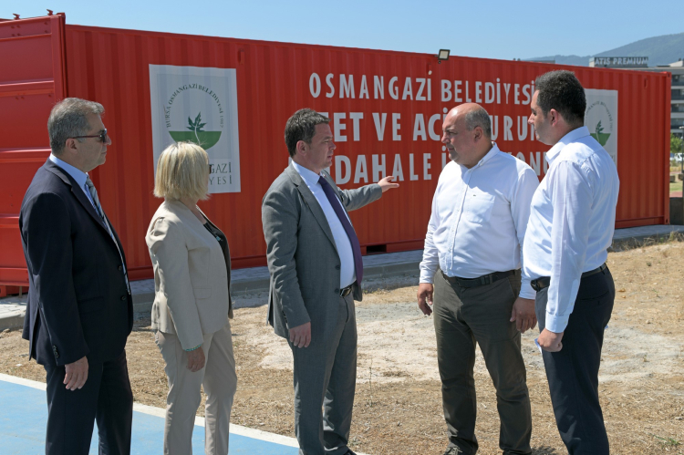 Osmangazi Belediye Başkanı Erkan Aydın, Afet ve Acil Durum Müdahale İstasyonu’nda incelemede bulundu. Bursa’nın deprem bölgesinde bulunduğunu hatırlatan Başkan Aydın, "Her an bir deprem yaşayabiliriz. Osmangazi Belediyesi olarak bu ihtimkale karşılık tedbirlerimizi alıyoruz. Bir afet durumunda can ve mal kaybını en aza indirmek çabasındayız. Soğanlı Millet Bahçesi’nin içerisine Türkiye’de türünün tek örneği olan 12,5 metre uzunluğunda 2,5 metre genişliğe sahip 30 metrekarelik Afet ve Acil Durum Müdahale İstasyonu yerleştirdik. Depremde ve diğer afetlerde ilk müdahale hayati bir öneme sahip. Afet anında ilk birkaç saat çok önemli. Kahramanmaraş merkezli 6 Şubat depremlerinin hemen ardından bölgeye gittik. Ancak ilk 72 saatte ne ekipman bulabildik ne de kurtarma ekiplerine rastladık. Bu durumdan yola çıkarak Afet ve Acil Durum Müdahale İstasyonu projemizi hayata geçirdik ve ilk istasyonu Soğanlı mahallesine yerleştirdik. İstasyonun anahtarı belediyemizde ve muhtarlıkta olacak. Güneş enerji sistemine sahip bu istasyon Türkiye’ye örnek olacak. Kalabalık mahallelerimize 30 metrekarelik, daha az nüfuslu mahallelerimize ise 15 metrekarelik istasyonlar yerleştireceğiz. İstasyonların içerisinde afet anında ihtiyaç duyulacak her şey bulunuyor. İstasyon içerisindeki malzemeler düzenli olarak yenilenecek. Ayrıca istasyon içerisindeki cihazlarında düzenli olarak bakımı yapılacak" dedi.