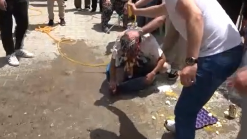 Daha sonra adet gereği damada tavaya yumurta kırdırılırken, damadın arkadaşları tarafından kafasında yumurtalar kırıldı, una bulandı. Bununla da sınırlı kalmayan damadın arkadaşları gelin evinin önüne leğen koyup soğuk su ve fırçayla damadı yıkadı.