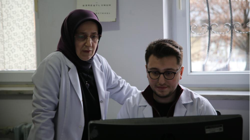 Meslek tercihinde annesini örnek aldığını söyleyen Dr. Ömer Faruk Topsakal, "Çanakkale Üniversitesi'nden 2024 yılında mezun oldum. Buraya atanmadan önce 112 Acil Servisi'nde görev aldım. Sonrasında da biraz annemi de örnek alarak aile hekimliğine geçtim. İlk mesaimizi yaptık, aslında daha çok taze. Birlikte çalışmak çok güzel, alışmaya çalışıyorum. Sisteme adapte olmaya çalışıyorum. Annem burada yaklaşık 17 yıldır çalışıyor. Küçükken kardeşimle buraya oyun oynamaya da gelirdik. Çocukken burada güzel vakitler geçirmiştik. Annemi örnek alıyordum. Hem meslek seçimimde olsun hem de burayı tercih açısından da onun izinden gittim. Özverili çalışarak ve hasta bakma açısından da her zaman annemi örnek almaya devam ediyorum. Kahvaltı yapacaksak eğer evde beraber yapıyoruz, ama bazen de yapmıyoruz tabii ki. Bazen de buraya vardığımızda yapıyoruz atıştırıyoruz. İşe yeni başladığım için annem bana çok yardımcı oluyor. Zaten odalarımız da yan yana oldu. Üniversiteden arkadaşlarım da ilk önce şaşırdılar, güzel tepkiler aldım herkesten. Annemin emeklilik düşünceleri vardı ama belki ben geldiğim için bu fikrini erteleyebilir" dedi.