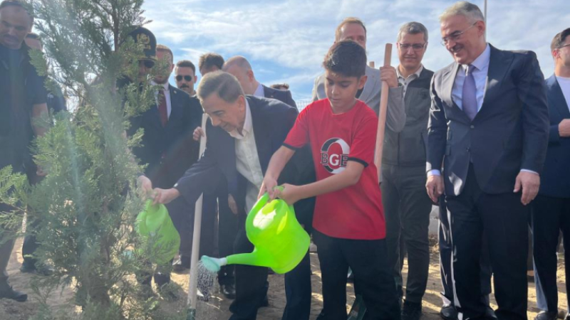 Konuşların ardından okulun yapımını üstlenen hayırsever Sabahattin Gazioğlu'na plaket takdim eden Vali Ayyıldız, daha sonra okulun bahçesine ağaç dikti. Bu yıl eğitim öğretim yılında Bursa'ya kazandırılan okulda ilk ders Vali Erol Ayyıldız tarafından verildi. Vali Ayyıldız, doğanın korunması, çevrenin kirletilmemesi, orman yangınlarına karşı dikkatli olunması konusunda öğrencilere bilgi verdi. Daha sonra söz alan Bursa Orman Bölge Müdürü Erdal Şahan da, çocuklara aileleriyle birlikte yapmaları gereken ve dikkatli olmaları gereken konularda bilinçlendirdi.