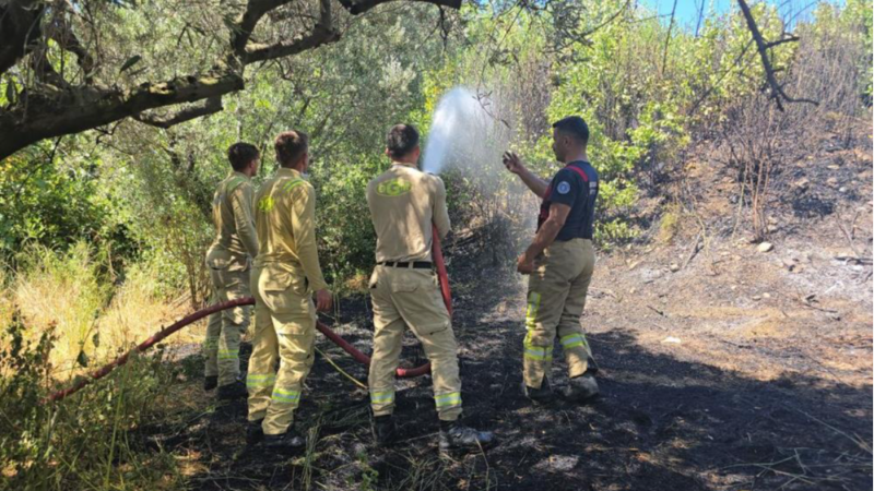 Henüz çıkış nedeni belirlenemeyen yangın, rüzgarın etkisiyle kısa sürede büyüdü. Alevleri fark eden bölge sakinleri, tarımsal sulamada kullanılan mobil su tankerleriyle ilk müdahaleyi yaptı. İhbar üzerine bölgeye Bursa Orman İşletme Müdürlüğü ekipleriyle birlikte Bursa ve Mudanya itfaiyesi ile Mudanya Arama Kurtarma (MAK) ekipleri sevk edildi. Arazinin engebeli yapısı nedeniyle bazı noktalara itfaiye araçları ulaşamadı. Bu bölgelere traktörlerle taşınan su tankerleri yönlendirilirken, traktörün dahi ulaşamadığı alanlara greyder yardımıyla acil müdahale yolları açıldı. Böylece yangının ilerlediği noktalara ulaşılarak müdahale genişletildi. Yangın, bölgeye yakın konumda bulunan onlarca dönümlük buğday tarlasına ulaşmadan önce kontrol altına alındı. Erken müdahale sayesinde büyük bir faciadan dönüldü. Ekiplerin bölgedeki soğutma çalışmaları sürüyor.