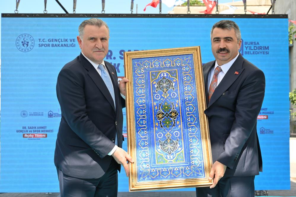 Yıldırım’da sporla güçlenen, sanatla incelen, kitapla büyüyen bir gençlik tasavvur ettiklerini belirten Başkan Yılmaz, "Göreve geldiğimizden bugüne 336 bin insanımıza spor hizmeti sunduk. 4 bin 313 lisanslı sporcumuz 4 bin 316 madalya, 210 kupa kazandı. 2 bin 787 özel çocuğa ve ailesine destek olurken, kadın spor merkezlerimizde 75 bin 233 kadın istifade etti. Dr. Sadık Ahmet Gençlik ve Spor Merkezi yalnızca bugünün değil, yarının Yıldırım’ı için bir yatırım. Burada bir bina değil; birlikte düşünen, birlikte üreten, birlikte yaşayan bir şehir idealinin somut karşılığını inşa ettik. Spor yapan her çocuk, kitap okuyan her genç, birlikte üreten her mahalleli Sadık Ahmet’in izini sürdükçe; bu eser anlamını bulacak. Bu vesileyle bu merkezimizin ilçemize kazandırılmasında büyük desteği olan Bakanımıza da teşekkür ediyorum" diye konuştu.