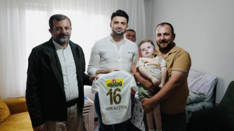 Bursaspor Başkanı Enes Çelik, Bursa Gürsu'da tedavi süreci devam eden minik yeşil beyazlı taraftar Hızır Ali Çakır'ı ziyaret etti. Başkan Çelik'e, Gürsu Belediye Başkanı Mustafa Işık da eşlik etti.