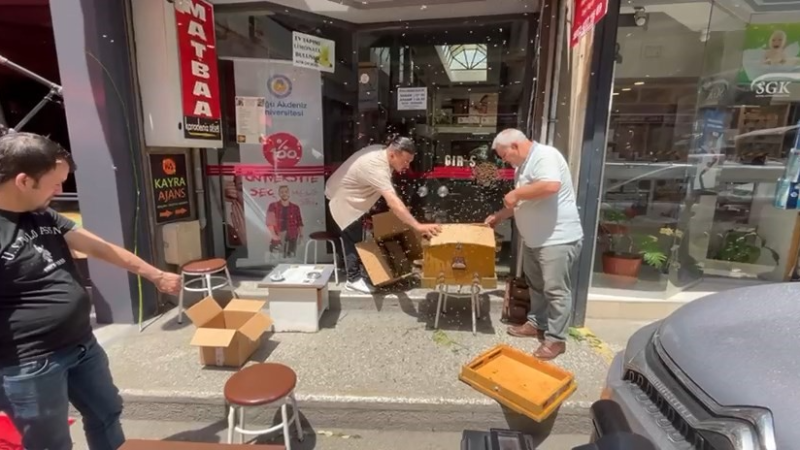 Esnafın bilgi vermesi üzerine olay yerine gelen arıcılıkla uğraşan ekipler, ilk önce kutunun içine aldığı arıları sonrasında ise peteklerin bulunduğu sandığa aldı. Arıları büyük bir soğuk kanlılıkla alan kişiler, esnafa ve vatandaşa da rahat nefes aldırdı.