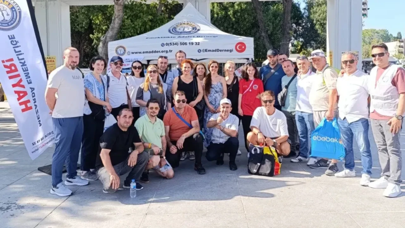 Meydanda stant kuran dernek üyeleri, vatandaşlara emeklilik sistemine ilişkin broşürler dağıttı.