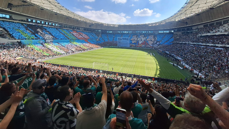 Kendi seyirci rekorunu kıran yeşil beyazlı taraftarlar, maç öncesinde koreografi çalışmasıyla yine ses getirdi.