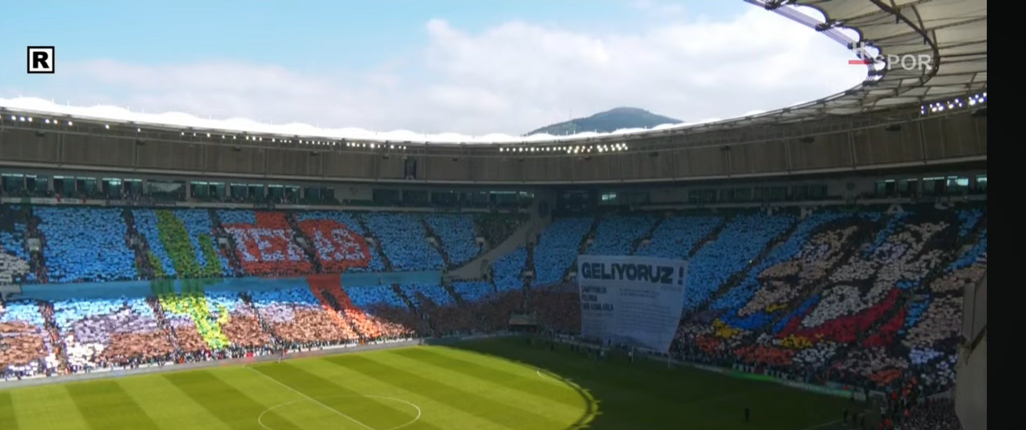 Maraton ve güney kale arkası tribününde yapılan ‘GELİYORUZ’ başlığı atılan çalışma büyük alkış aldı.