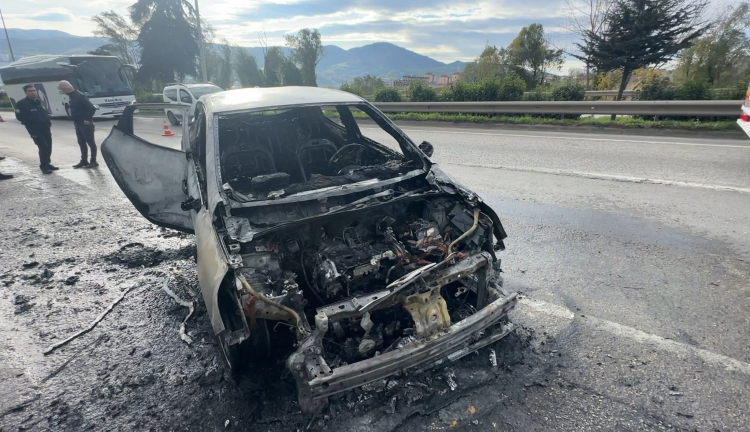 Ankara Bulvarı'nda Samsunsporlu oyuncu Anthony Musaba'nın kullandığı kiralık araç, seyir halindeyken motor kısmından alev aldı.