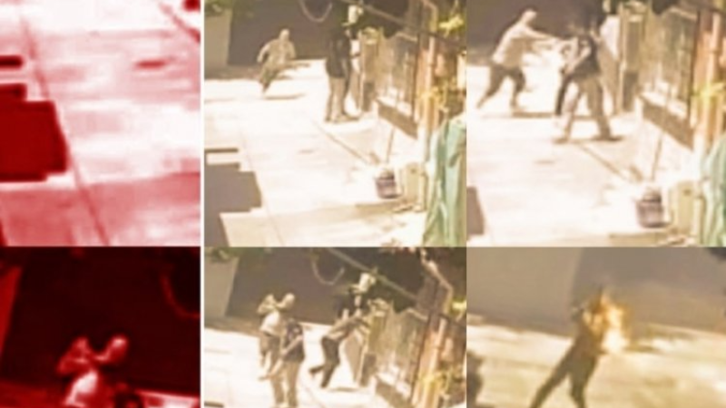 Amcasının elinde bir şişeyle hızla gelip yanıcı maddeyi yeğeninin üzerine döktükten sonra yakması, gencin ise yanarak koşması güvenlik kamerası tarafından saniye saniye kaydedildi.