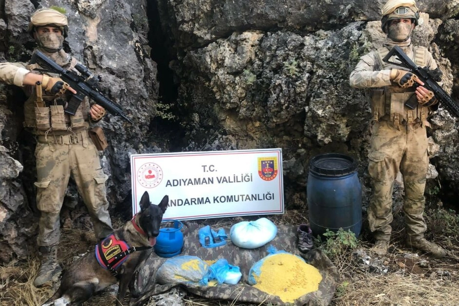 Adıyaman İl Jandarma Komutanlığı görevlilerince kırsalda icra edilen tarama faaliyetinde 2018-2019 yılları arasında Adıyaman’da faaliyet gösteren örgüt mensupları tarafından kullanıldığı değerlendirilen toprağa gömülü vaziyette bir kısım yaşam malzemesi ele geçirildi.