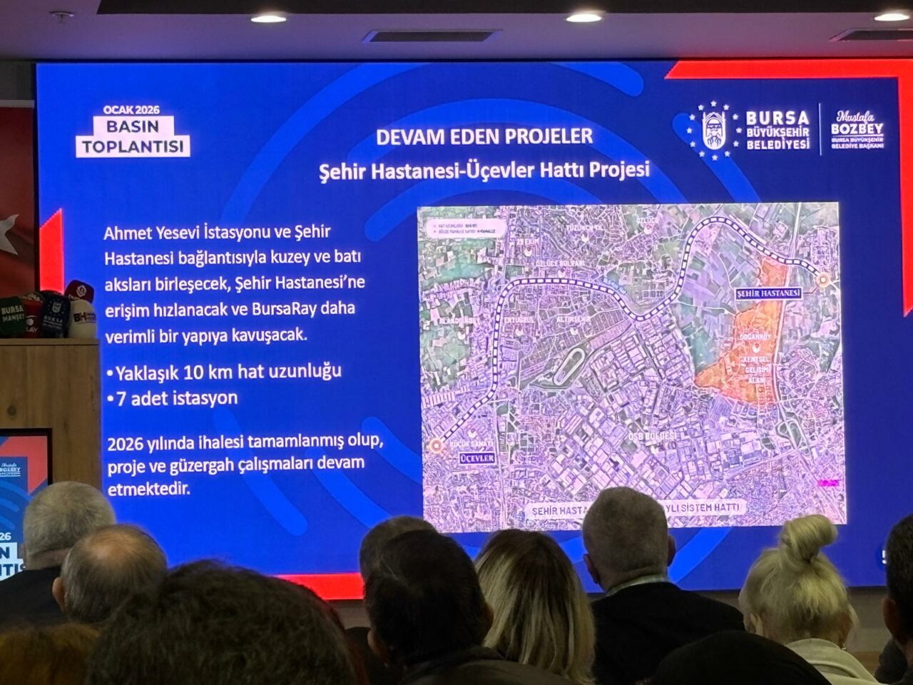 Üçevler’e yapılacak olan Ahmet Yesevi İstasyonu ve Şehir Hastanesi bağlantısıyla kuzey ve batı aksları birleşecek, Şehir Hastanesi’ne erişim hızlanacak ve BursaRay daha verimli bir yapıya kavuşacak. Yaklaşık 10 km hat uzunluğu ve 7 adet istasyon olacak. 2026 yılında ihalesi tamamlanmış olup, proje ve güzergah çalışmaları devam etmektedir.