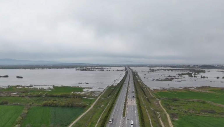 Bursa istikametinden Bandırma istikametine devam eden otoyol, suyla kaplanan ovayı tam ortadan ikiye böldü. Su altında kalan tarım arazilerinin dronla çekilen görüntüleri, taşkının etkilerini gözler önüne serdi.