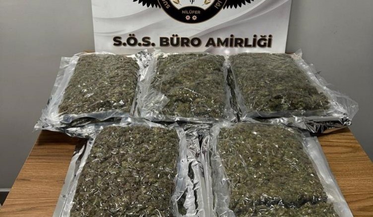Nilüfer İlçe Emniyet Müdürlüğü Suç Önleme ve Soruşturma Büro Amirliği ekiplerince, uyuşturucu veya uyarıcı madde imal ve ticareti yapıldığı yönünde ihbar gelmesi üzerine çok yönlü saha çalışmaları gerçekleştirildi. Yürütülen çalışmalar neticesinde bahse konu şüphelilerin F. D. ve M.Ç. isimli şahıslar olduğu tespit edilerek kullandıkları araç ile birlikte gözaltına alındılar. Araçta yapılan aramada; 3 kilogram esrar maddesi ele geçirildi. Devam eden çalışmalarda aynı konu ile bağlantılı F.O. , A.M.Y. ve M.B. isimli üç şüpheli daha tespit edilerek gözaltına alındı. Şahıslara ait ikamette yapılan aramada; hassas terazi ile 562 gram esrar maddesi ele geçirildi.