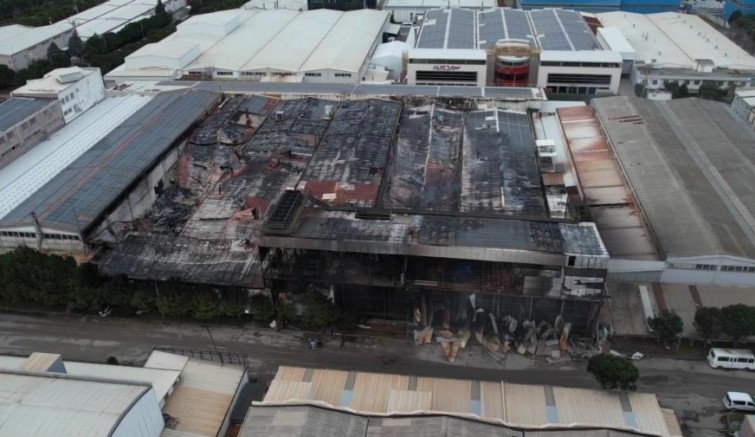 Nilüfer ilçesindeki Minareliçavuş Organize Sanayi Bölgesi'nde bulunan kimyasal kaplama fabrikasında gece saatlerinde çıkan ve sabaha karşı kontrol altına alınan yangının verdiği hasar sabahın ilk ışıklarıyla havadan görüntülendi. Dron ile kaydedilen görüntülerde, otomotiv sektörüne yönelik metal yüzey işlem proseslerinin yürütüldüğü fabrikanın tamamen kullanılamaz hale geldiği görüldü. Yangında fabrikanın duvarlarının büyük bölümünün yıkıldığı, yapının siyah is ve duman izleriyle kaplandığı dikkat çekti. Bölgede ekiplerin soğutma çalışmaları devam ederken, sabah saatlerinde ortaya çıkan tablo hasarın boyutunu gözler önüne serdi.