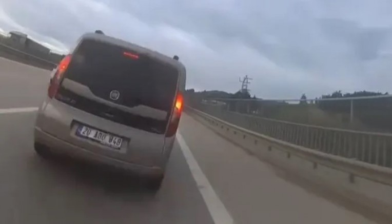 Belden yukarısı araç içinde kalan sürücünün kolları kırılırken, kaza kask kamerasına yansıdı.