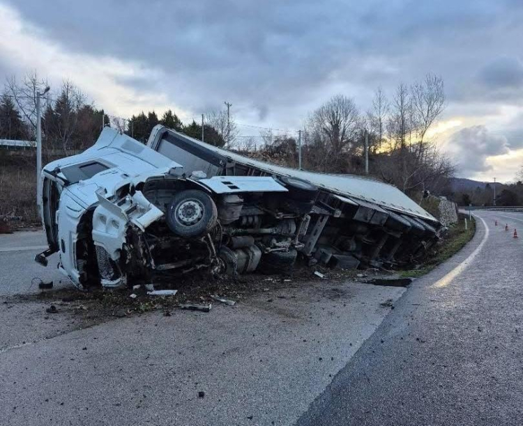 Edinilen bilgiye göre, İnegöl’den Bozüyük istikametine seyir halinde olan Serhat U. (32) idaresindeki 06 FEY plakalı tır, sürücüsünün direksiyon hakimiyetini kaybetmesi sonucu devrildi.