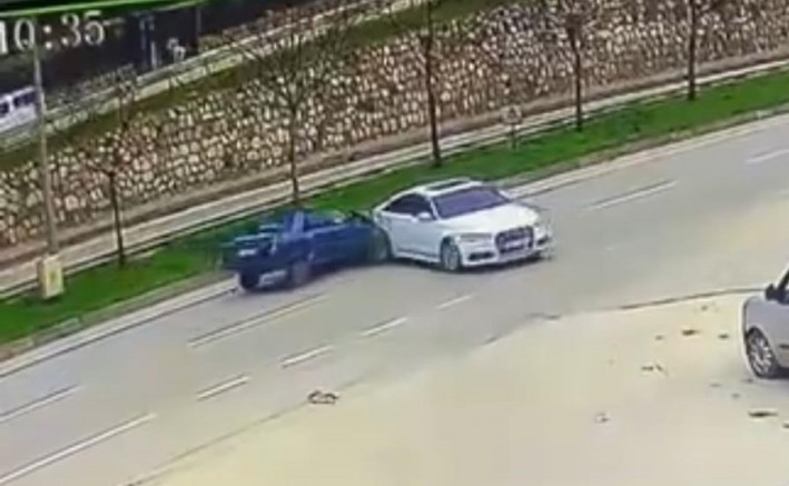 Bursa’nın Gemlik ilçesinde, otogara gelen bir sürücü aracını park ettikten sonra ayrıldı. El freni çekilmeyen araç bir süre sonra harekete geçti, manevra yaptı, anayola doğru ilerlemeye başladı. Sürücüsüz araç trafiğe çıkınca, seyir halindeki bir başka aracın çarpmasıyla yaşanan kaza güvenlik kamerasına anbean yansıdı. Şans eseri kazayı yara almadan atlatan sürücü, çarptığı araçta kimsenin olmadığını öğrenince şok üzerine şok yaşadı.