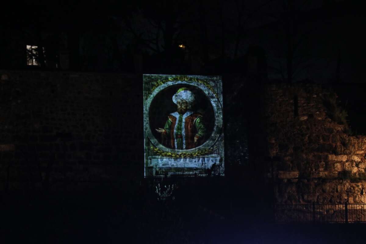Bursa Büyükşehir Belediyesi, fethin 700. yılı etkinlikleri kapsamında Pirinç Han duvarlarını ve Tophane surlarını birer dev ekrana dönüştürerek Bursalılara görsel şölen yaşattı.