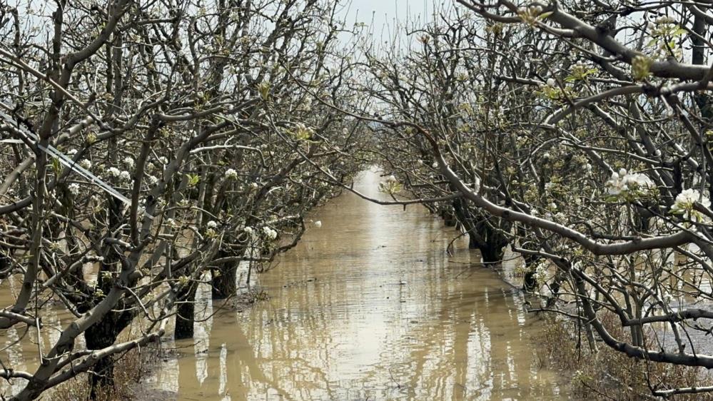 Armut bahçesine ilaçlama yapan üretici Turgay Koç ise yaşadıklarına zorluğa dikkati çekerek, “Traktörlere, bize, çiftçiye, meyve ağaçlarına yazık. 9 dönüm armut bahçemin büyük bölümü su altında. Bir hafta 10 gün su çekilmezse kurayacak. Önümüzdeki günler de yağışlı görünüyor, çaresisiz” diye konuştu.