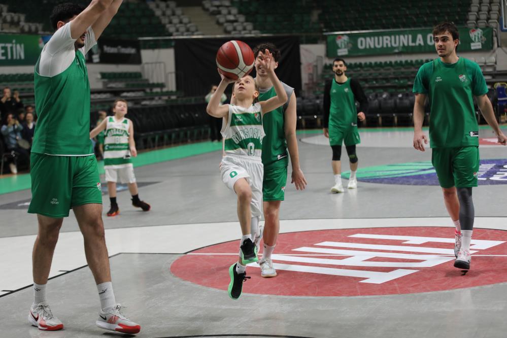 Ancak karşılaşmanın ilerleyen bölümlerinde sahneye minik basketbolcular çıktı. Cesur oyunları ve bitmeyen enerjileriyle tempoyu artıran minikler, A Takım oyuncularını zaman zaman zor durumda bıraktı. Özellikle hızlı hücumlarda ve mücadele gücünde minikler, “devleri terleten” performanslarıyla dikkat çekti. Parkede iki tarafın da geri adım atmadığı mücadele, tribünlerde bulunan velilerden büyük alkış aldı. Saha kenarında antrenörler ise karşılaşmayı dikkatle takip ederek sık sık uyarılarda bulundu.