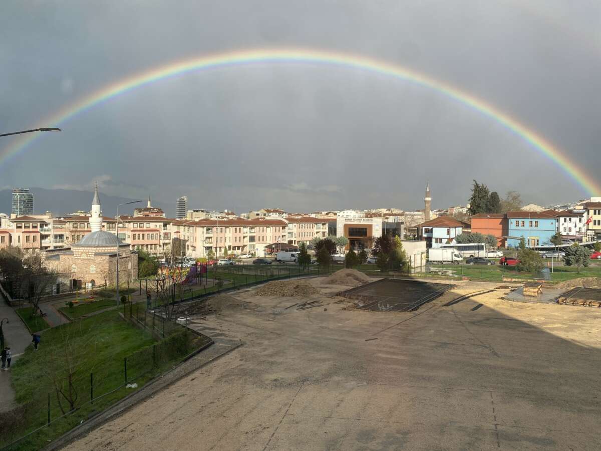 Öğleden sonra etkisini gösteren yağmur bulutlarının dağılmaya başlamasıyla birlikte gökyüzünde beliren gökkuşağı, vatandaşların ilgisini çekti. Şehrin birçok noktasından görülebilen gökkuşağı, özellikle yüksek binalar ve Uludağ silüetiyle birlikte kartpostallık görüntüler oluşturdu. Kısa süreliğine