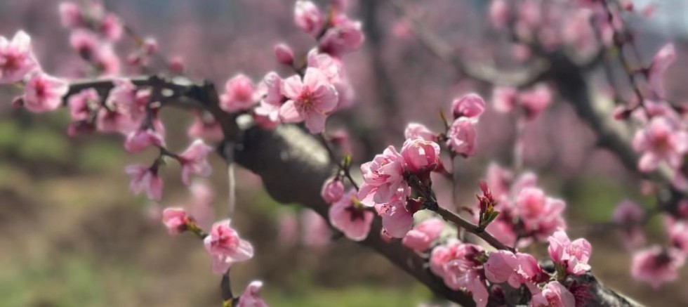 Yükseltilerin arasında, binlerce dekar griye çalan alanın ortasında göz kamaştırıcı bir manzara, bir umut isyanı yükseliyor. Yangının pençesinden sahiplerinin bakımları sayesinden kurtulan, dağların kuytusunda saklı 50 dönümlük şeftali bahçeleri, baharın gelişiyle pembe çiçeklere durdu ve büyüleyici bir görsel şölen sundu.