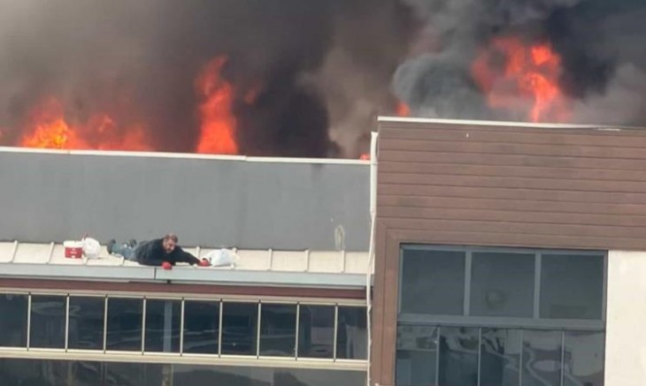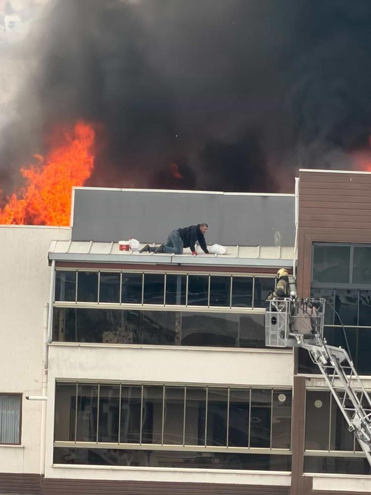 Yangında mahsur kalan bir çatı ustası ile dumandan etkilenen başka bir çalışan için zamanla yarış başladı. Kendini dışarıya atan kişi çatının ucunda kurtarılmayı bekledi. Bursa Büyükşehir Belediyesi’nin 40 metre merdivenli aracı mahsur kalan kişiyi kurtardı. Dumandan da etkilenen başka bir kişiye de 112 ekibi müdahale etti.
