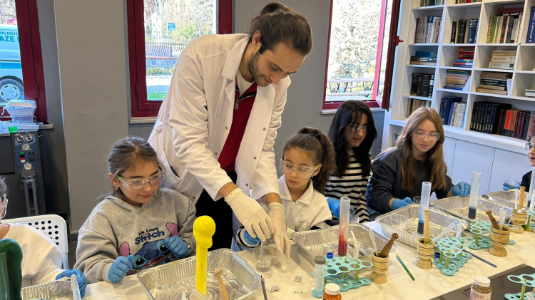 “Bitkilerden Kâğıt Kromatografisi” atölyesinde öğrenciler, bir yaprağın içindeki renkleri ayırarak keşfettiler. “Fildişi Macunu Deneyi”nde ise kimyasal tepkime ve gaz oluşumunu renklerin ve köpüklerin eşliğinde hep birlikte gözlemlediler.
