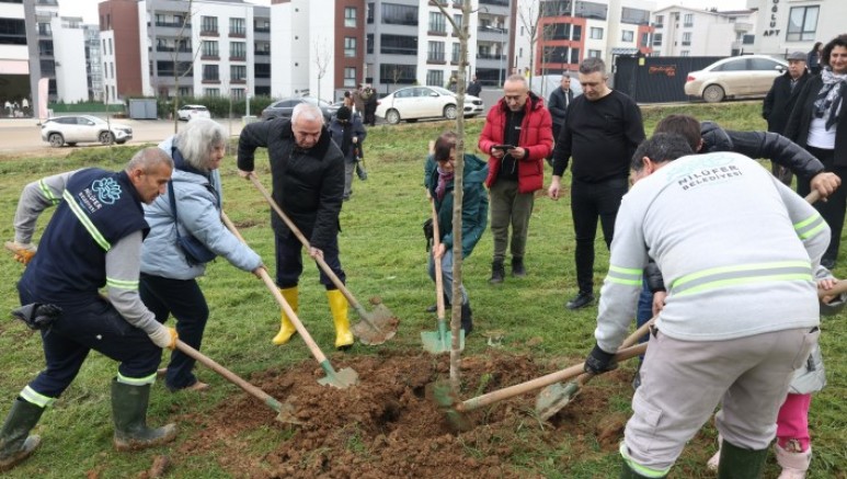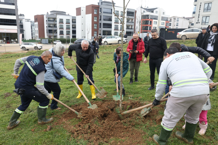 Nilüfer Belediye Başkanı Şadi Özdemir’in de katıldığı çalışmada, fidanlar mahalle sakinleriyle birlikte toprakla buluşturuldu. Başkan Özdemir, küreği eline alarak mahalle halkıyla birlikte dikim çalışmasına katıldı.