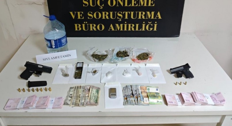 Bursa Emniyet Müdürlüğü Yıldırım İlçe Emniyet Müdürlüğü'ne bağlı Yıldırım Suç Önleme ve Soruşturma Büro Amirliği ekiplerince yapılan çalışmalarda, Yeşil Mahallesi'nde bulunan bir ikamette, hakkında farklı suçlardan 4 yıl 2 ay kesinleşmiş hapis cezası bulunan Yelid A.'nın saklandığı aynı adreste, uyuşturucu madde ticareti yapıldığı ve ruhsatsız silah bulundurulduğu bilgisine ulaşıldı.