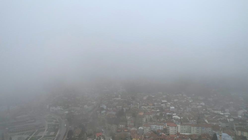 Sabahın ilk saatlerinde özellikle yamaç bölgelerde yoğun şekilde görülen sis tabakası, zamanla aşağı kesimlere doğru inerken şehir silüetini de kapladı. Kentin bazı noktalarında sisin oluşturduğu görüntü dikkat çekti.