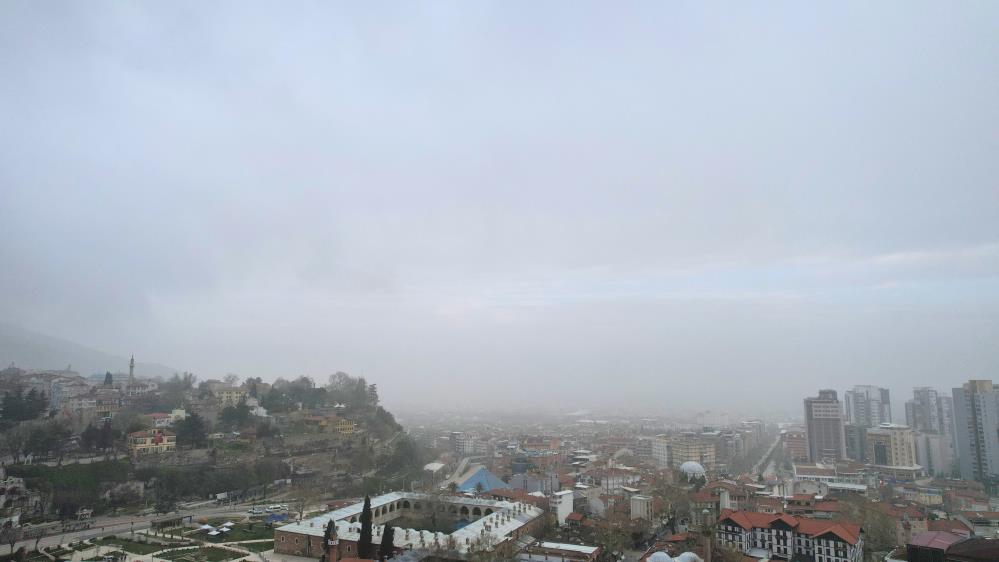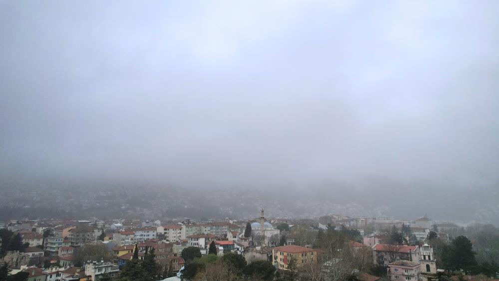 Bursa’nın Osmangazi ilçesi ve çevre ilçelerde sabah saatlerinden itibaren etkili olan sis, kentin yüksek kesimlerinden şehir merkezine doğru ilerliyor.