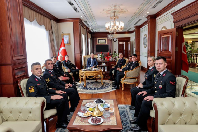 Valilik makamında gerçekleşen ziyarette İl Jandarma Komutanı ve beraberindeki heyet, Vali Ayyıldız'a çiçek takdiminde bulundu.