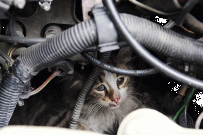 Soğuk havalarda hayatta kalmak için otomobil motorlarının sıcaklığı ile ısınmaya çalışan kediler, araç hareket ettikten sonra bulunduğu yere sıkışarak ya da yollarda düşerek yaralanabiliyor, hatta can verebiliyor.