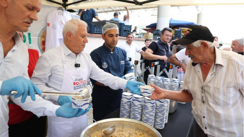 Bursa Büyükşehir Belediyesi tarafından Hicri takvime göre yılın birinci ayı kabul edilen Muharrem ayı dolayısıyla kentin 17 ilçesinde aşure dağıtımı yapılıyor. Bursa Büyükşehir Belediye Başkanı Mustafa Bozbey de Gürsu Kapalı Pazar Yeri’nde Bursalılara aşure ikram etti. Aşure ikramına yoğun ilgi gösteren vatandaşların Muharrem ayını tebrik eden Başkan Bozbey, aşure geleneğinin paylaşmanın en güzel simgelerinden biri olduğunu ifade etti. Birlik ve beraberliğin yaşandığı bir ayın içinde olduklarını vurgulayan Başkan Bozbey, "Büyükşehir Belediyesi olarak kentin birçok noktasında aşure ikramında bulunuyoruz. Bursalılara da aşure tadında bir yaşam diliyorum" dedi. Başkan Mustafa Bozbey, aşure dağıtımının ardından hem pazarda alışveriş yapan vatandaşlarla hem de esnafla sohbet etti.