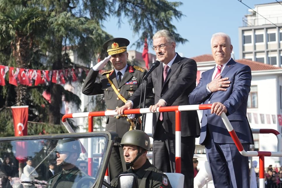 29 Ekim Cumhuriyet Bayramı’nın 101’inci yılı, Bursa Valiliği tarafından düzenlenen programla kutlandı. Atatürk Caddesi’ndeki törene büyük ilgi gösteren vatandaşlar, ellerindeki Türk bayraklarıyla kutlamaları izledi. Törenler, Vali Erol Ayyıldız Tarihi Valilik Binası’nda protokol üyeleriyle birlikte tebrikleri kabul etmesiyle başladı.