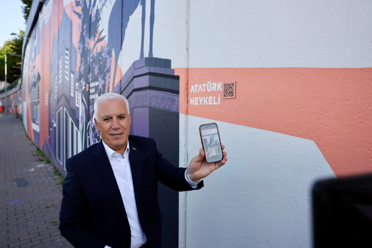 Kültürpark’ın kuzey duvarında çok anlamlı bir çalışmaya imza atıldığını söyleyen Başkan Mustafa Bozbey, Bursa’ya ait değerlerin 1000 metrekarelik alana sahip olan duvara işlendiğini belirtti. Tarihi Belediye Binası’ndan Irgandı Köprüsü’ne kadar birçok eserin resmedildiğini ifade eden Başkan Bozbey, "Bursa’nın değerlerini, kente gelen misafirlerimize tanıtma noktasında kentin farklı noktalarında duvar sanatı projeleri başlattık. Yapılan eserlerin altında QR kodları da yer alıyor. İsteyen herkes bu kodu telefonunda okutarak resmedilen tarihi eserin bilgilerini Türkçe ve İngilizce öğrenebiliyor. Bu çalışmayla Bursa’nın tanıtımına önemli bir katkı sağlamış oluyoruz. Emeği geçenlere teşekkür ediyorum" dedi.